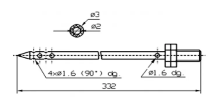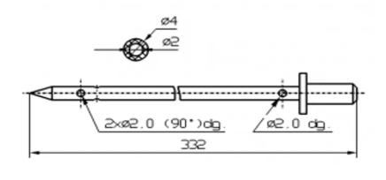 2 x Ø1.5 inlet holes - 2 x Ø1.2 outlet holes @180°